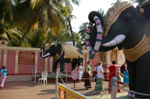 While in seminary, I was able to attend a “cultural immersion” trip to India. One of the many things that we did in India was visit many, many holy sites, including churches, a mosque, Hindu temples, an ancient Jain temple, and more. One such place that we visited was a Hindu temple dedicated primarily to the deity Gokarnanatha (Shiva). It was a beautiful temple—the open court yard and interior were paved with solid, polished marble and the buildings were ornately decorated with gold and wood carving and much beautiful, brightly coloured painting. In India, people take of their shoes to enter any holy space (churches included), and so we were walking on smooth, cool marble, exploring this space in bare feet.