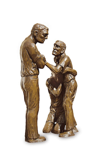 Featured image: A photograph of a sculpture entitled “Reconciliation—Luke 15” Bronze Sculpture (2005) by Margaret Adams Parker, located on the Bovender Terrace of Duke Divinity School