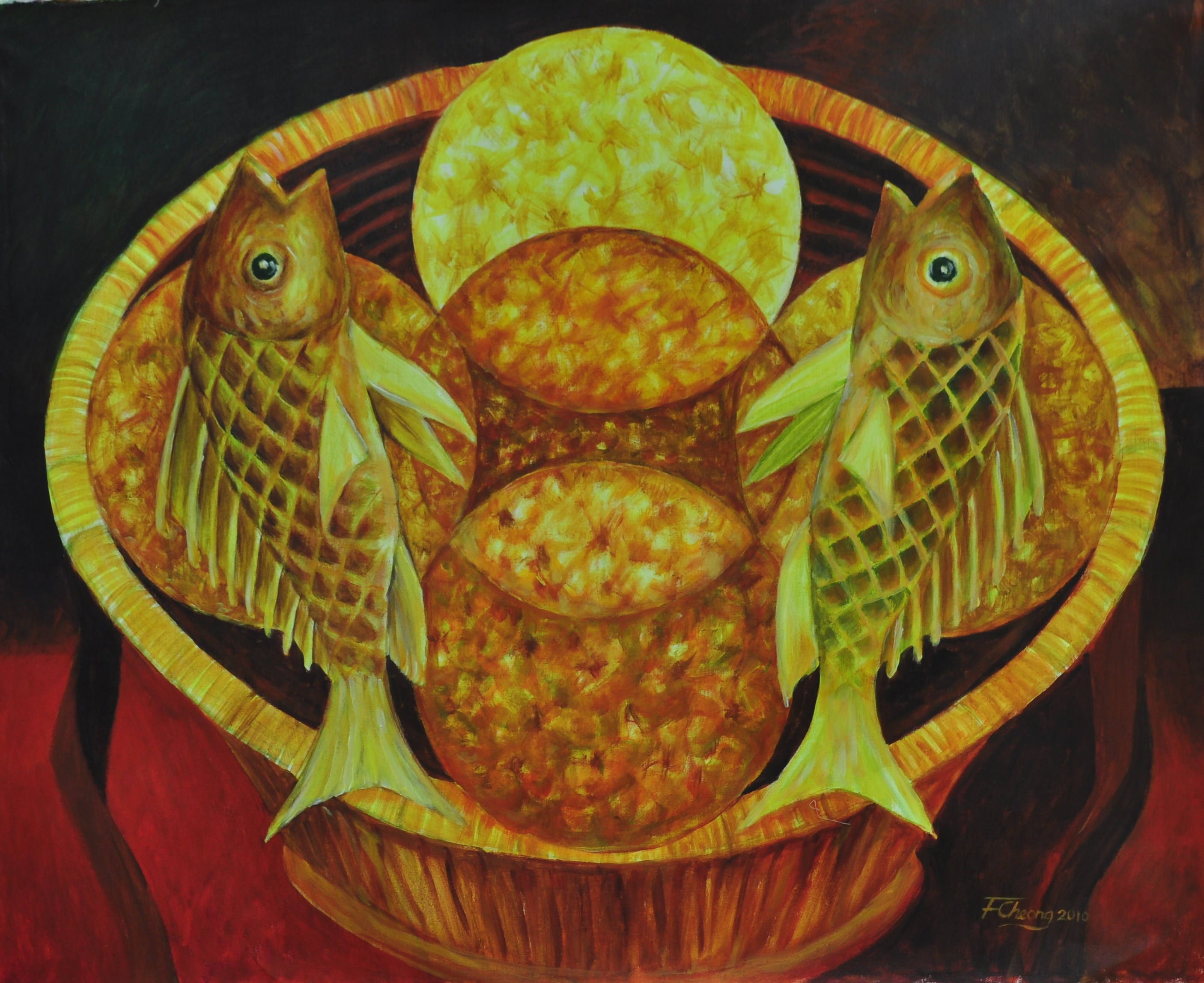 Featured Image:  Five Loaves and Two Fish found on PicsAnt, who apparently collected it from Changing Church Change World.  It was evidently painted by an F. Cheong in 2010, but I cannot find any more information.